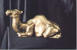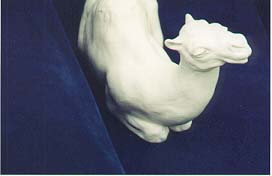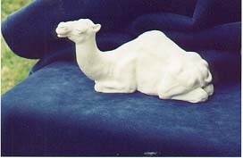 Arabian Camel: This sculpture is depicted in the original fired clay and is currently being cast for reproduction. The casting will be limited to 100 numbered pieces which will be offered in either bronze or "cold cast" bronze (filled polyurethane with a thin coating of bronze). Each piece will be cast upon receipt of one-half of the purchase price with the balance due prior to shipment. A numbered certificate of authenticity signed by the artist will accompany each sculpture.