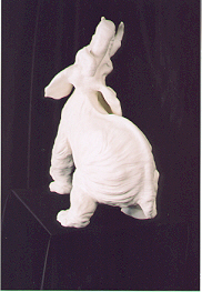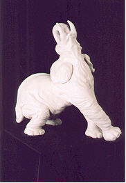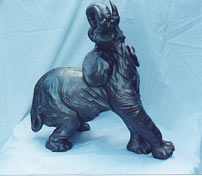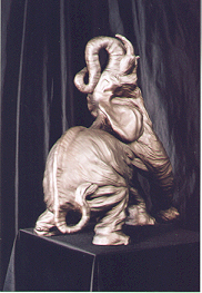 A bull elephant can be a dangerous animal when angered. This sculpture is depicted in the original fired clay and two cold cast bronze patinas and is ready for reproduction. The casting will be limited to 100 numbered pieces which will be offered in either bronze or "cold cast" bronze (filled polyurethane with a thin coating of bronze). Each piece will be cast upon receipt of one-half of the purchase price with the balance due prior to shipment. A numbered certificate of authenticity signed by the artist will accompany each sculpture.