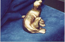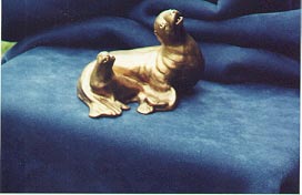 Sea Lion Cow and Pup: Sea Lions are attentive and protective mothers in the wild. Their intelligence enables them to be taught to perform in public for their human peers. This sculpture is depicted in the original fired clay and is currently being cast for reproduction. The casting will be limited to 100 numbered pieces which will be offered in either bronze or “cold cast” bronze (filled polyurethane with a thin coating of bronze). Each piece will be cast upon receipt of one-half of the purchase price with the balance due prior to shipment. A numbered certificate of authenticity signed by the artist will accompany each sculpture.